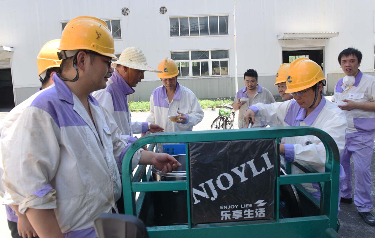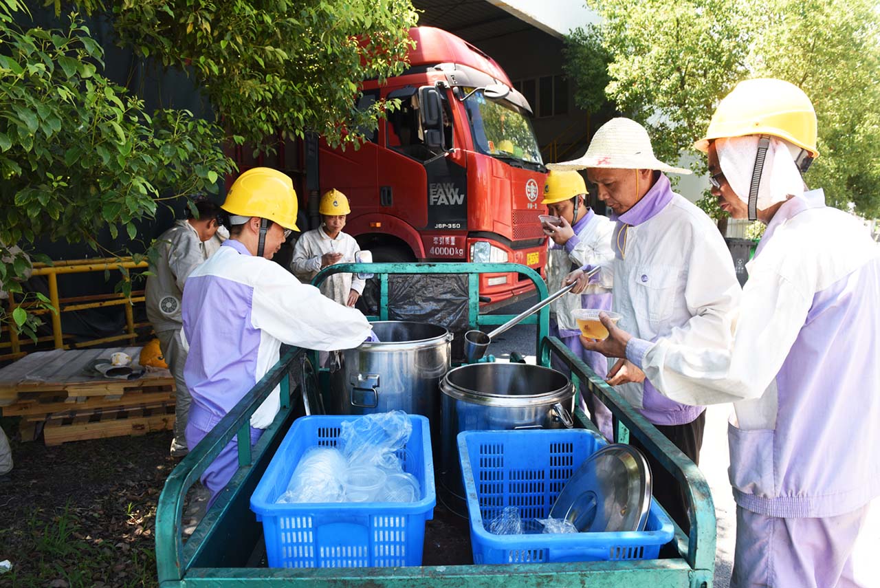 烈日炎炎,酷暑難擋,集團(tuán)公司廣大員工堅(jiān)守崗位,奮戰(zhàn)高溫。今天下午,總務(wù)部開始為高溫一線員工送上涼爽可口的消暑湯。和往年一樣,氣溫在35℃以上的日子,總務(wù)部將在每天下午把解暑湯送到生產(chǎn)現(xiàn)場(chǎng),冰鎮(zhèn)綠豆、銀耳羹、蝦皮咸菜湯……品種每天有變化,讓員工在酷暑天感受到公司的關(guān)懷。保持旺盛干勁。