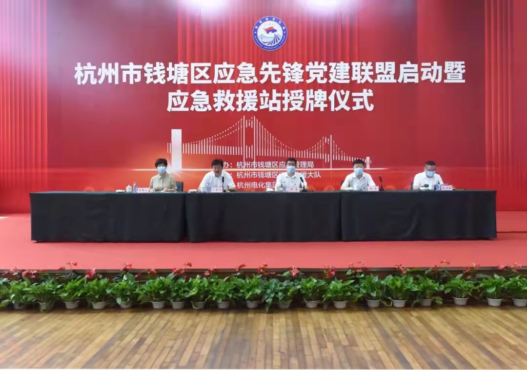 8月6日上午,杭州市錢塘區(qū)應(yīng)急先鋒黨建聯(lián)盟啟動暨應(yīng)急救援站授牌儀式在杭州電化集團(tuán)有限公司活動中心舉行。儀式由錢塘區(qū)應(yīng)急管理局主辦,錢塘區(qū)消防救援大隊、杭州電化集團(tuán)有限公司協(xié)辦。錢塘區(qū)區(qū)委常委、組織部長吳勇,副區(qū)長徐進(jìn),區(qū)委組織部副部長、兩新工委書記施正森,杭電化集團(tuán)黨委書記、董事長、總裁蔣慧兒出席并在主席臺就坐。錢塘區(qū)應(yīng)急管理局局長葉蕭紅主持儀式。錢塘區(qū)相關(guān)機(jī)關(guān)單位、各街道,中國化學(xué)品安全協(xié)會、中國計量大學(xué)質(zhì)量與安全工程學(xué)院等聯(lián)盟指導(dǎo)單位以及150余家企業(yè)負(fù)責(zé)人和應(yīng)急救援站負(fù)責(zé)人共180余人參加儀式。